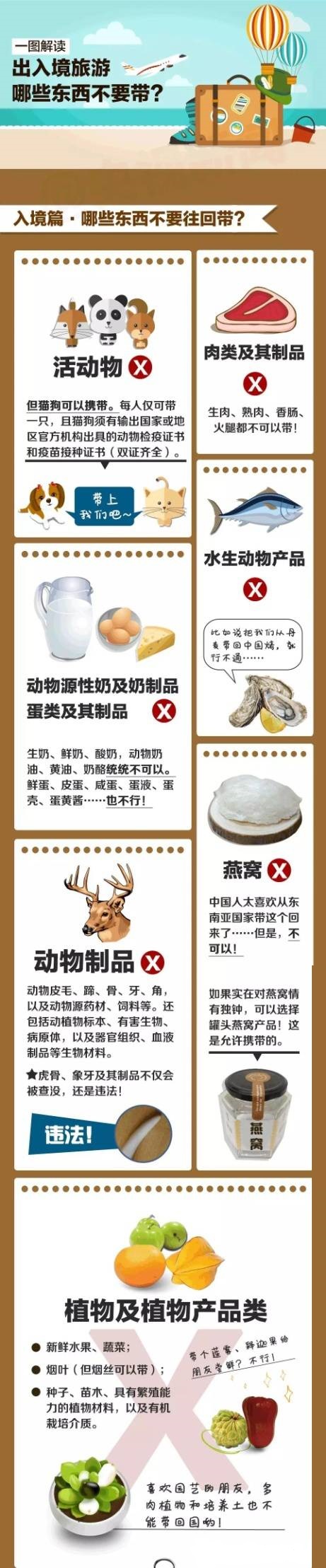 你一定有过这样的经历:满心欢喜国外游,大包小包运回国/出国,一过安检傻了样,大包小包少一半!因此,在出去撒花做足当地游攻略的同时,备足一份禁止入境产品清单才能保证一路绿灯“通关”。